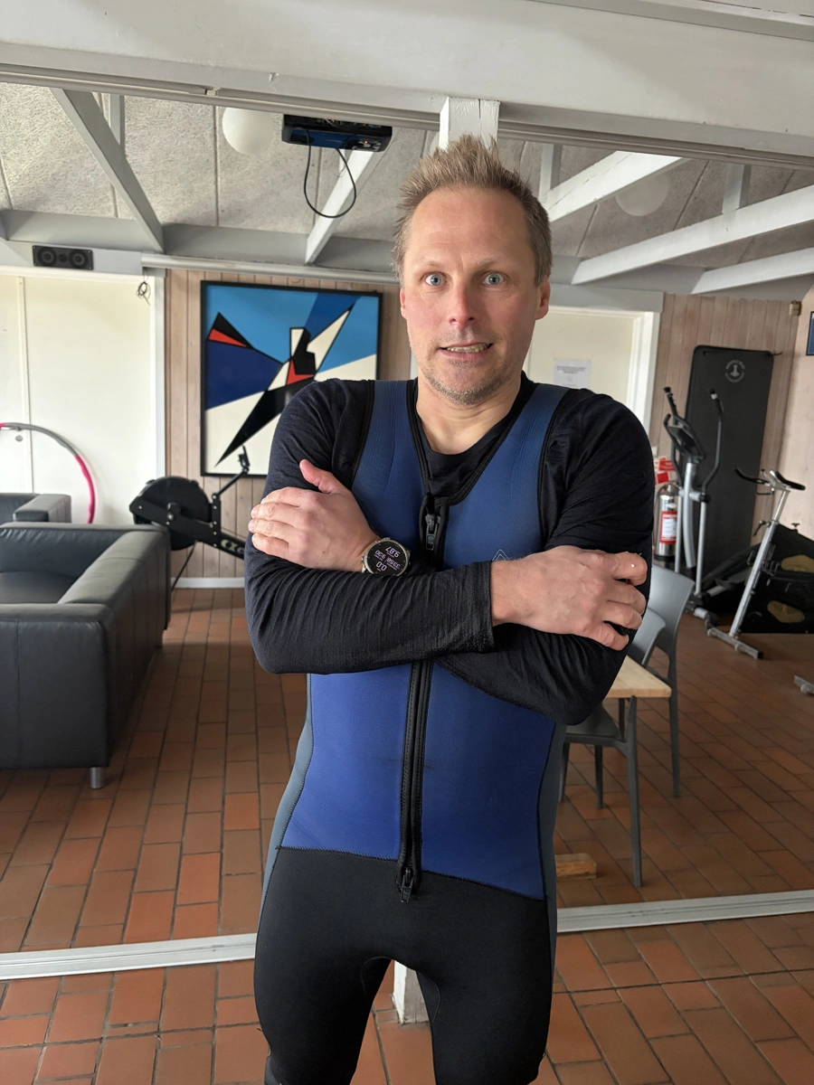 Rasmus valgte at falde i vandet ud for klubben efter en god tirsdagsrotur. Vandet er 5 grader varmt. Tillykke med titlen